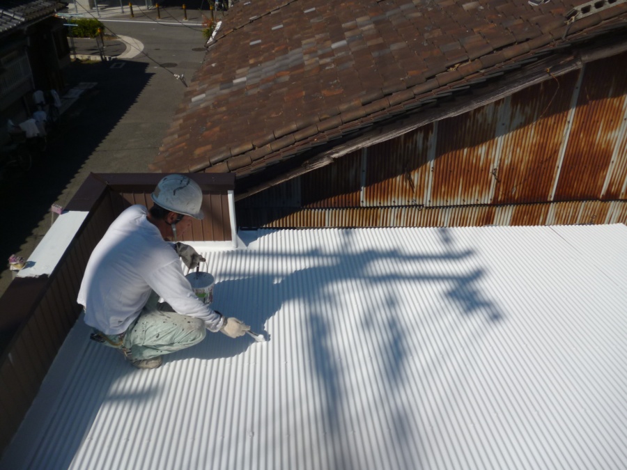 ホーム > 東大阪市で屋根塗装工事トタン屋根に遮熱塗料施工しました