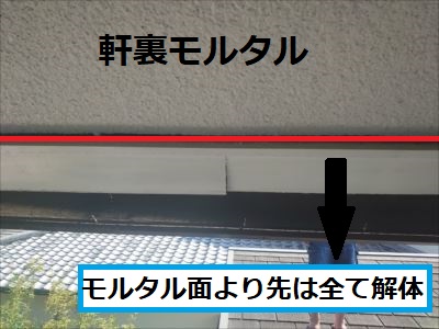 『軒のモルタル面より先の雨樋や幕板などを全て撤去』➡『下地の新設』➡『鼻隠しと雨樋の新設』