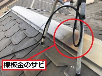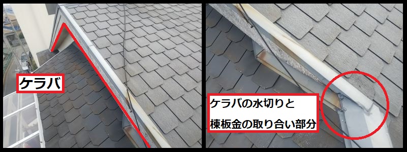 ケラバの水切り金物の劣化と、棟板金との取り合い部分に注目しました!