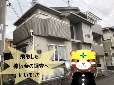 ホーム > 堺市美原区にて風災被害に遭い飛散した棟板金の調査へ伺いました…