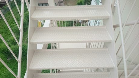 鉄骨階段の柱・手摺の上塗仕上げが完了しました。