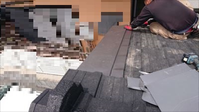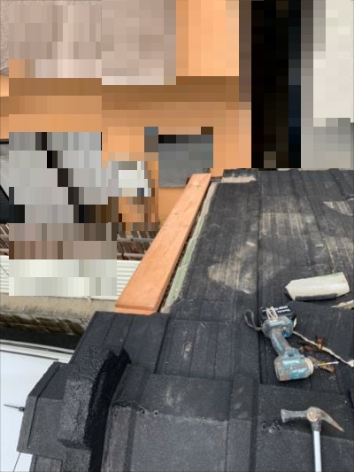 まずは破損していたケラバの下地を復旧しました。屋根材を固定する為には下地が必要となります。ケラバは屋根の端なのでしっかりと固定しないと屋根材が落下する危険性が高くなってしまいます。
