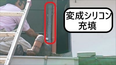 ※変成シリコンで補修をすると将来手摺や外壁を塗装する際に上から塗料が塗れます。