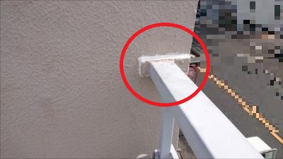 台風の影響で外壁と手摺の取り合い部分にクラックが入っていました。そちらに水が廻らないように変成シリコンを充填して補修しています。