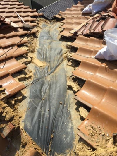 まずは既存の谷樋とその廻りの瓦を一部解体します。