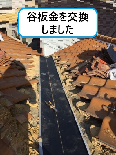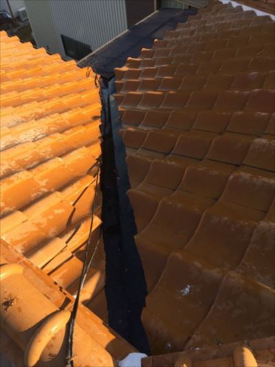 既存谷樋の撤去・谷板金を設置・瓦を復旧して谷樋修繕完了
