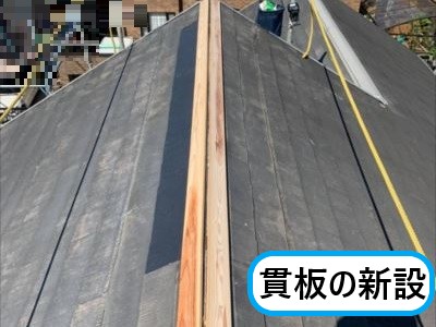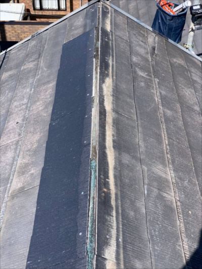 貫板が強風で飛散していた箇所のスレート屋根材が破損していたのでその部分だけ新しく差し替えました。