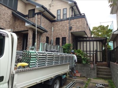 足場を設置することで、材料や道具などのの持ち運びがスムーズに出来て安全に高所作業が行えます。作業効率が上がり、より丁寧な作業を行えます。