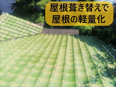 瓦だけでなく葺き土も撤去します。横暖ルーフに葺き替えると現在の屋根の総重量の4分の1ぐらいになるのではないのでしょうか。