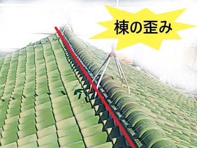 棟の歪みは瓦の落下にも繋がり、棟に不具合が出ると雨漏りにも発展します。