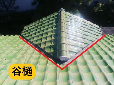 谷樋は屋根面の水下同士が交わりあい、谷になっている部分のことで屋根から集まった雨水を軒樋へと排水する役割があります。