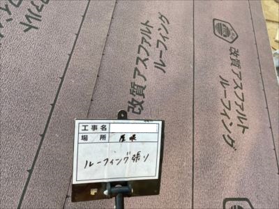 ルーフィングも野地板と同じように、水下側から水上側へと張っていきます。