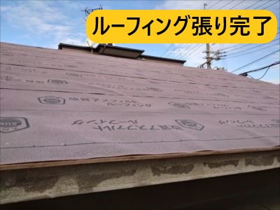 堺市西区にて平屋建ての瓦屋根を屋根葺き替えで軽量化|野地板・ルーフィング施工時の様子