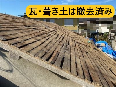 ホーム > 堺市西区にて平屋建ての瓦屋根を屋根葺き替えで軽量化|野地板・…