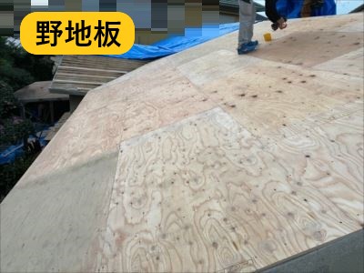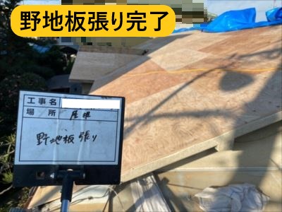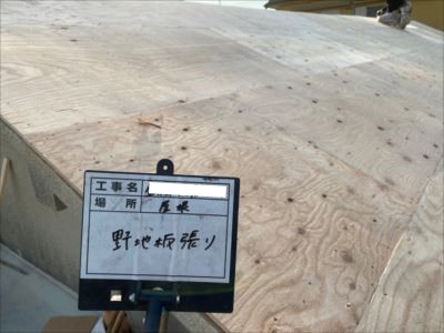 野地板は、既存のバラ板の上から増し張りをします。