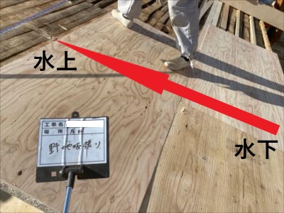 野地板を貼る順番は水下(水が流れ落ちる方向)