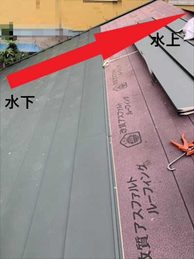 雨水の流れに逆らうように、水下から水上方向に葺くことで屋根材同士の隙間から雨水が入り込むのを防いでくれます。