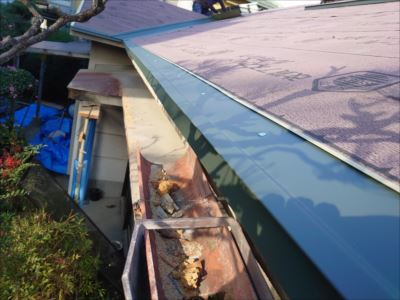 多くの雨水が流れてくる箇所なので、谷板金が錆びて穴が空くなどの