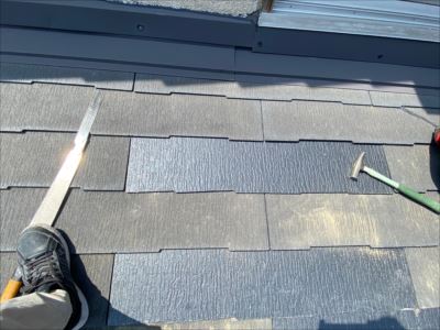 新しいスレートをハンマーで叩き込み、奥へと差し込んでスレートの差し替えが完了です。