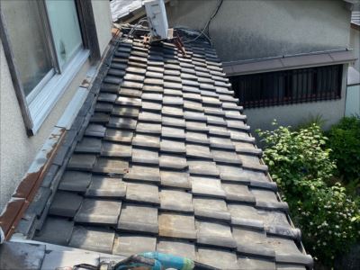 ホーム > 堺市西区にて落下したケラバ瓦の補修|下屋瓦、スレートの補修も…