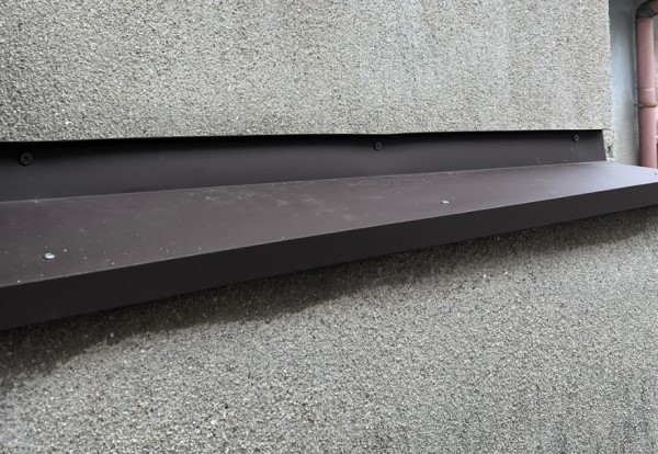 板金屋さんが現場で曲げ加工し、取り付けも行いました。立ち上がり部分や角も綺麗に納まっていますね。