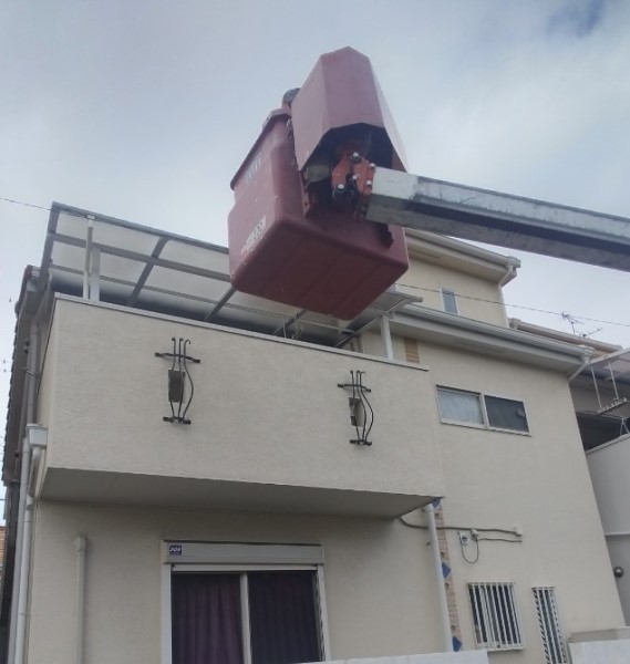 街の屋根やさん堺店でも高所作業を使用しての工事を行っています▶高石市にて3階ベランダ屋根の張り替え工事|高所作業車を使用して波板張り替えを行いましたまた