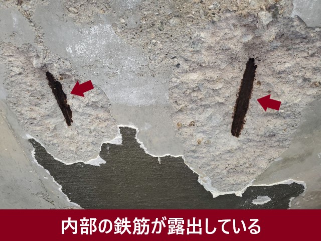 コンクリート内部で錆びた鉄筋が膨張して表面が剥がれ落ちる『爆裂』という現象です。この現象は、