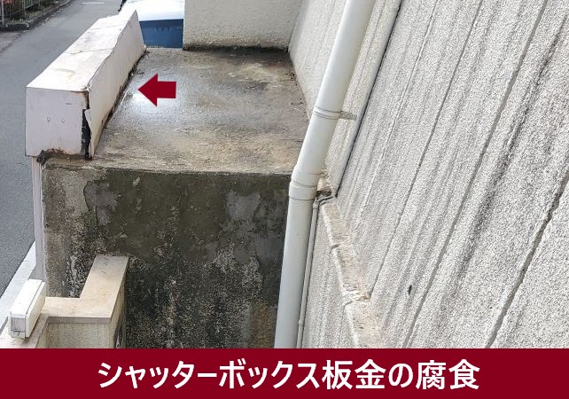 平らな所にシャッターボックスは設置されているので、雨の日はこのように水浸しになっていたでしょうね。