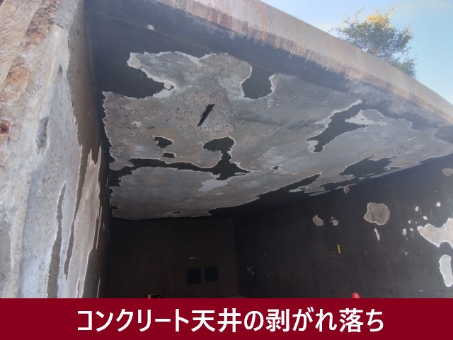 現地調査の結果:ボックスガレージの天井や壁が剝がれ落ちた原因