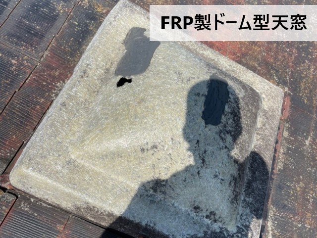 「FRP製(強化プラスチック)」の角型立体天窓(台形ドーム型)でした。