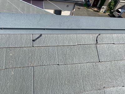 堺市中区にて前回、2年前の台風被害でスレート屋根材(レサス)が