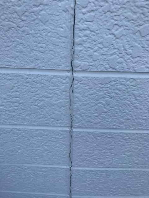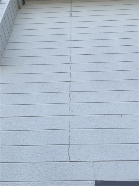 外壁のコーキング・クラックの状況写真です。サイディング目地の部分です。大分コーキング部分にクラックがあるので、コーキング打ち替えをおすすめ致します。