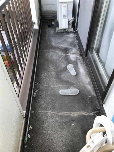 最後にベランダの状況です。防水がなく、モルタルで仕上げてあり、クラックもあるのでベランダは雨漏りする前に防水工事をおすすめ致します。