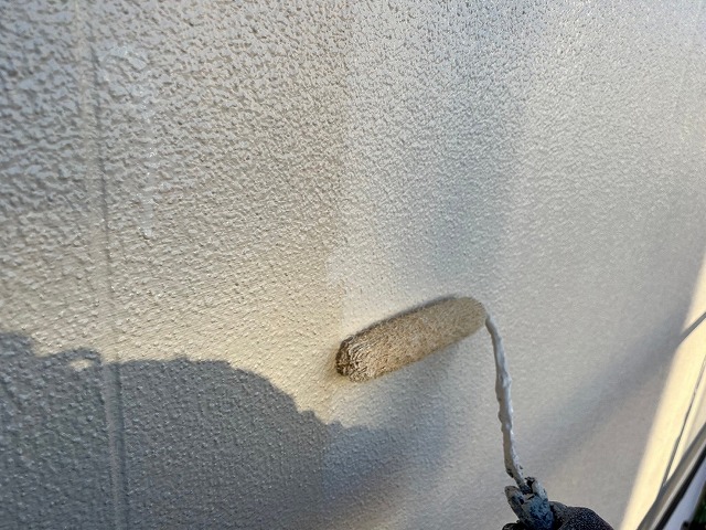 高圧洗浄後、下塗りを行います。下塗りは塗料の密着力を高める大切な工程です。