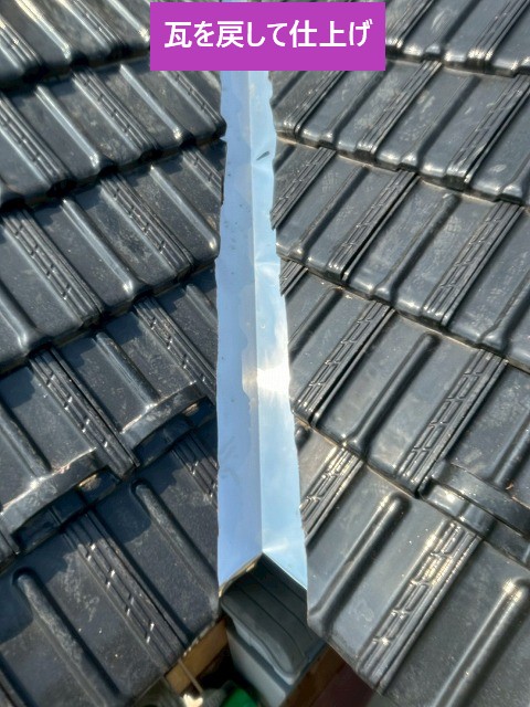 最後に取り外していた瓦を元に戻し、谷との取り合い部分を細かくチェックします。