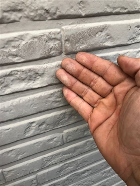 外壁の全体にチョーキングがありました。当時は約10年位の耐久性塗料で施工したので、今回はラジカル制御の塗料で施工したいと思います。
