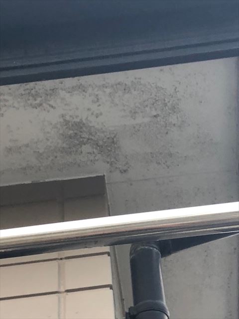 続いては軒天部分です。少しカビが出てきてます。前回もケンエースを施工しましたが、10年でこのようになってしまいました。