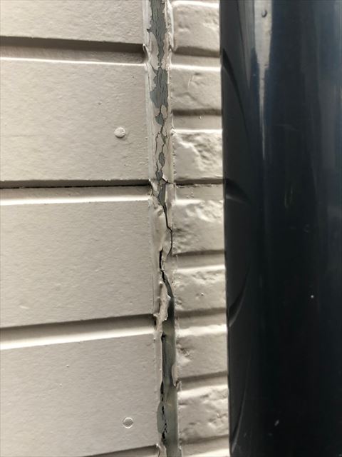 増築部分と既存建物の境目のコーキングです。コーキングは亀裂がありませんが、塗装に亀裂がはいってました。
