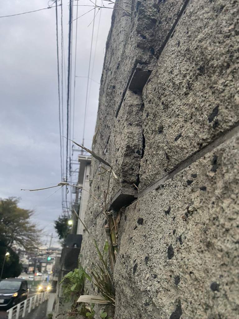 草がたくさん生えて根を張りブロックが押し上げられ、ブロックにズレが生じていました。