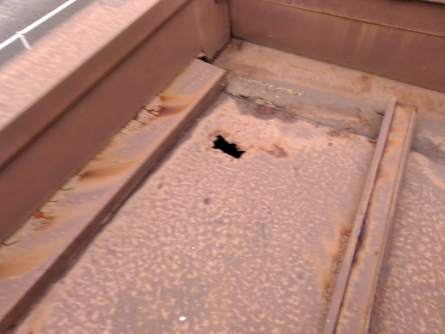 勾配がない分雨水などが溜まり易く、錆びや腐食が著しく進んだものと思われます。