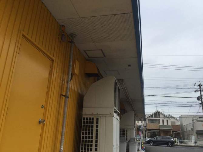 名古屋市港区の店舗屋根から雨漏りがしているので店舗を貸しているオーナー様より一度見てもらいたいと依頼がありお伺いしました。