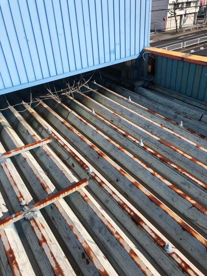 大屋根も金属屋根なので、表面を削り錆を落としてから塗装などで錆びを防ぐ必要があります。