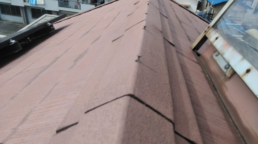 棟のスレート瓦部分もやや錆びており、ビスが浮き出ていました。