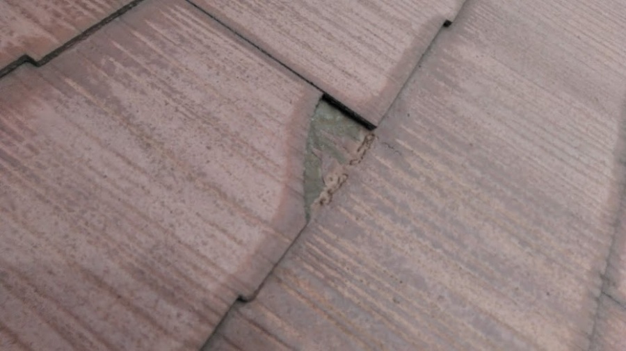 欠損している部分を発見しました。確かに、屋根材の一部が欠けています。
