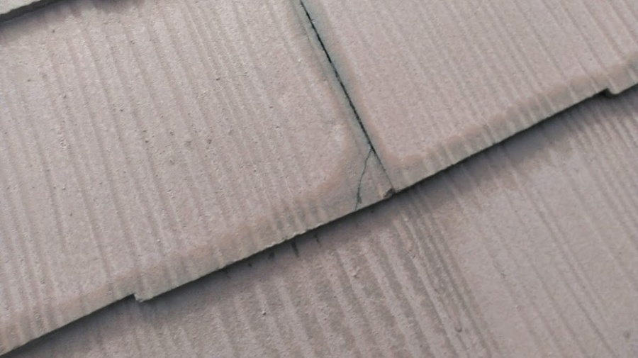 全体的に割れやすい状態になっていると思われるので、早めに塗装もしくは、葺き替えなどを行う必要があります。