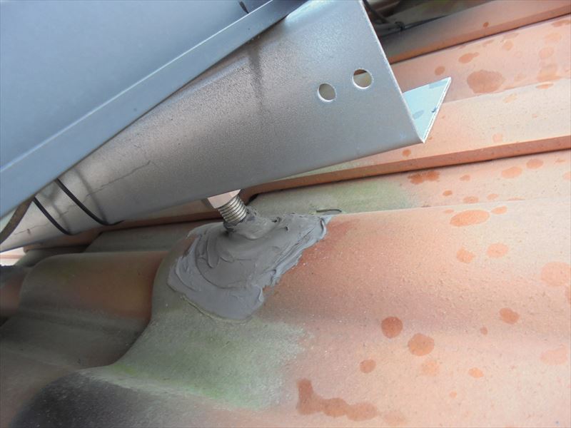 太陽光パネルを設置する際に、アンカー工法と呼ばれる、瓦に穴をあけ、下地に金具を固定し、穴をあけた瓦から金具を出し太陽光を取付ます。