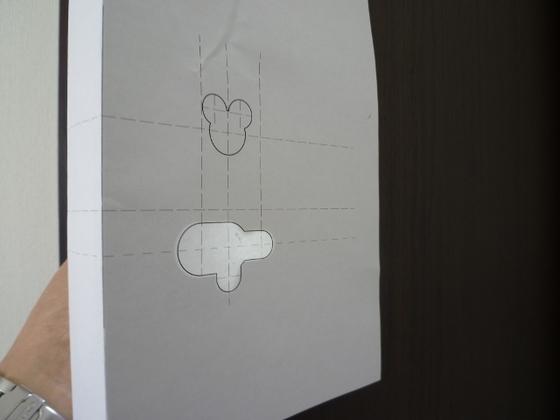 ミッキー型やアザラシの顔型の型紙に沿ってドリルで穴開け!