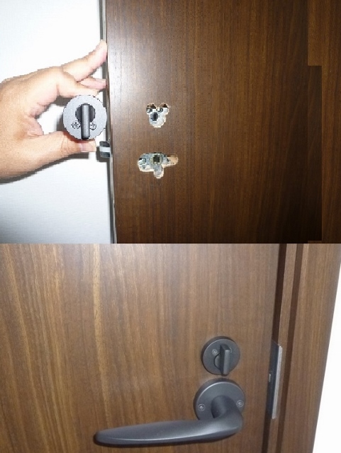 ホーム > 静岡市葵区鷹匠で内装ドアにカギを設置する工事を行ってます。