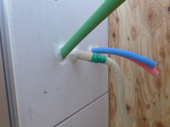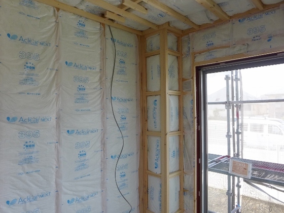 内装下地の木の間隔が39.5cmですからそれに合わせて断熱材も『アクリアネクスト395』の表示。
