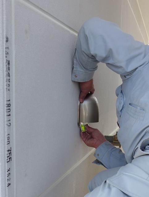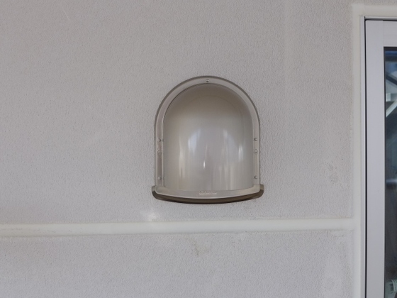 吸気口と排気口は雨の侵入が心配ですから、穴は下向きになっています。